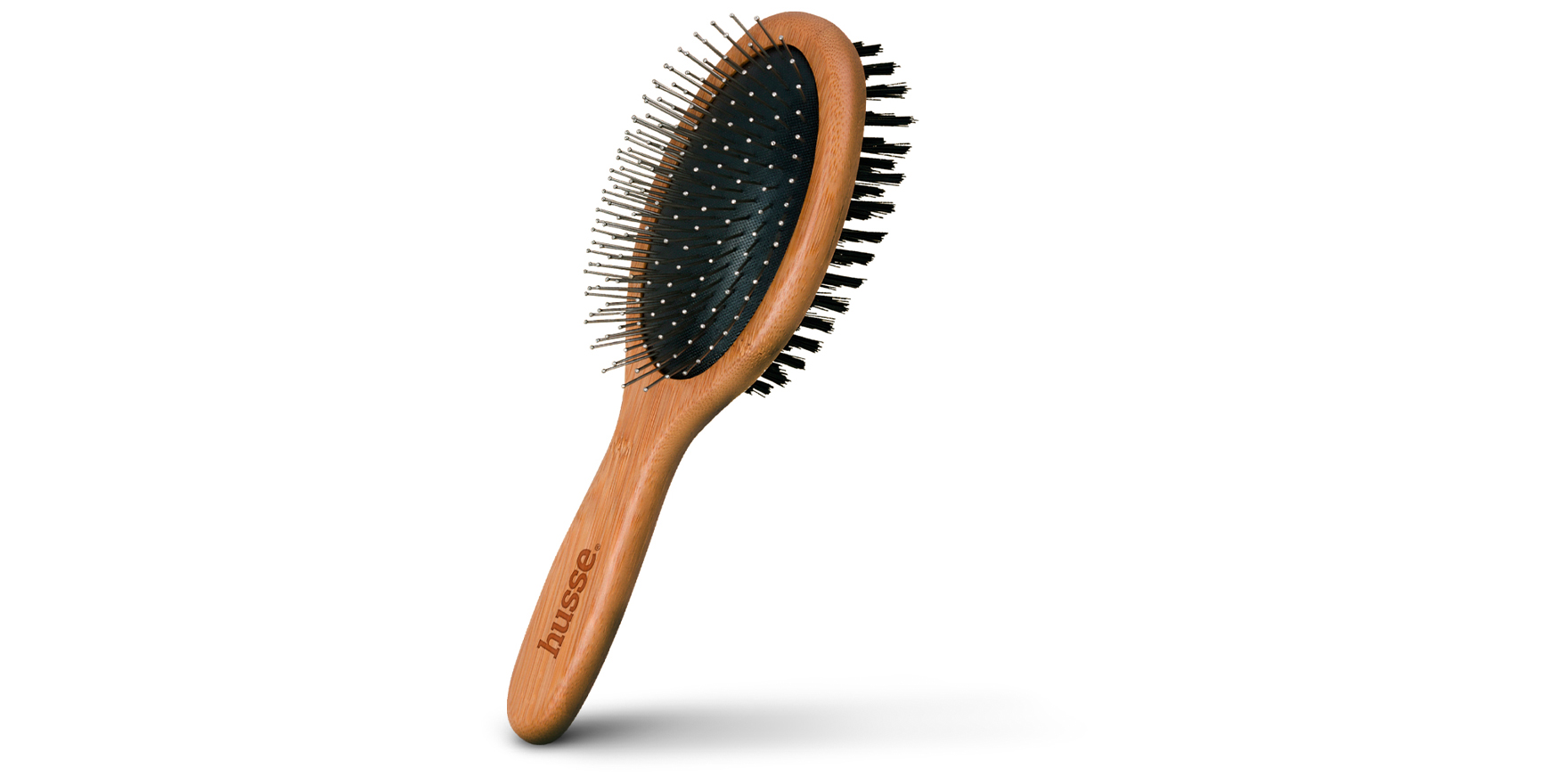 Ova dvonamjenska četka ima konstrukciju i ručku od bambusa, čelične igle s jedne strane i mekani gumeni zračni jastuk s čekinjama vepra s druge. Dizajnirana je za kućne ljubimce s kratkom do srednjom dlakom.