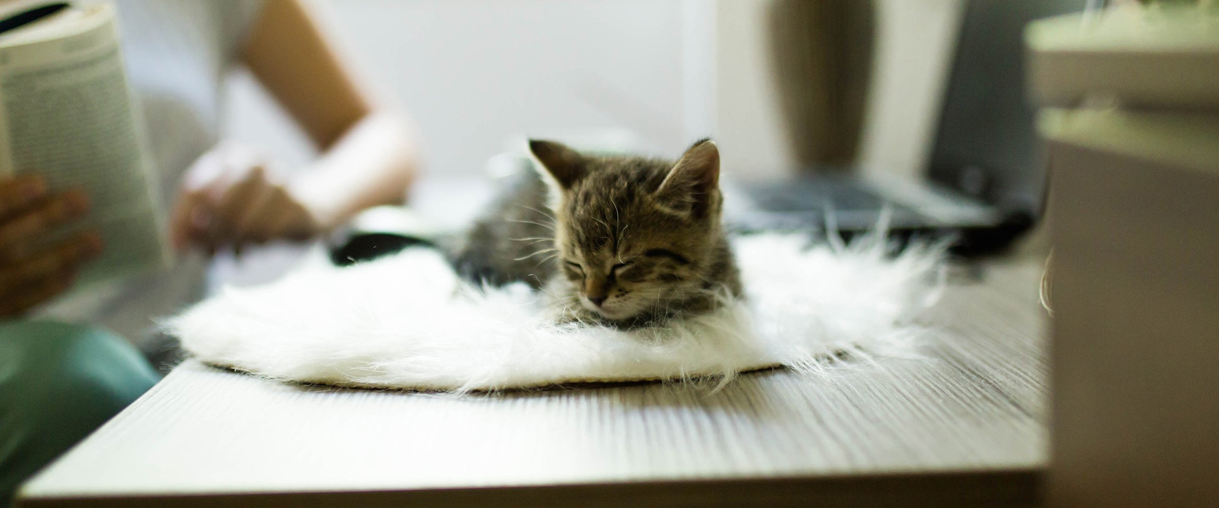 Pustite li mačku da sjedi na namještaju, možete biti sigurni da će vam skakati po stolu dok radite. Kako biste to izbjegli, možete pomaknuti granice i ne dopustiti mački da bude blizu stola ili stvorite na stolu određeno mjesto na kojem će mačka moći odmarati i biti blizu vas dok vi radite. Na predviđeno mjesto za odmor možete staviti udoban pokrivač ili krevet na kojoj će mačka spavati i svaki put kada mačka legne na krevet, pohvalite ju i pomazite kako bi ona stvorila naviku i da vas u konačnici ne ometa dok radite.